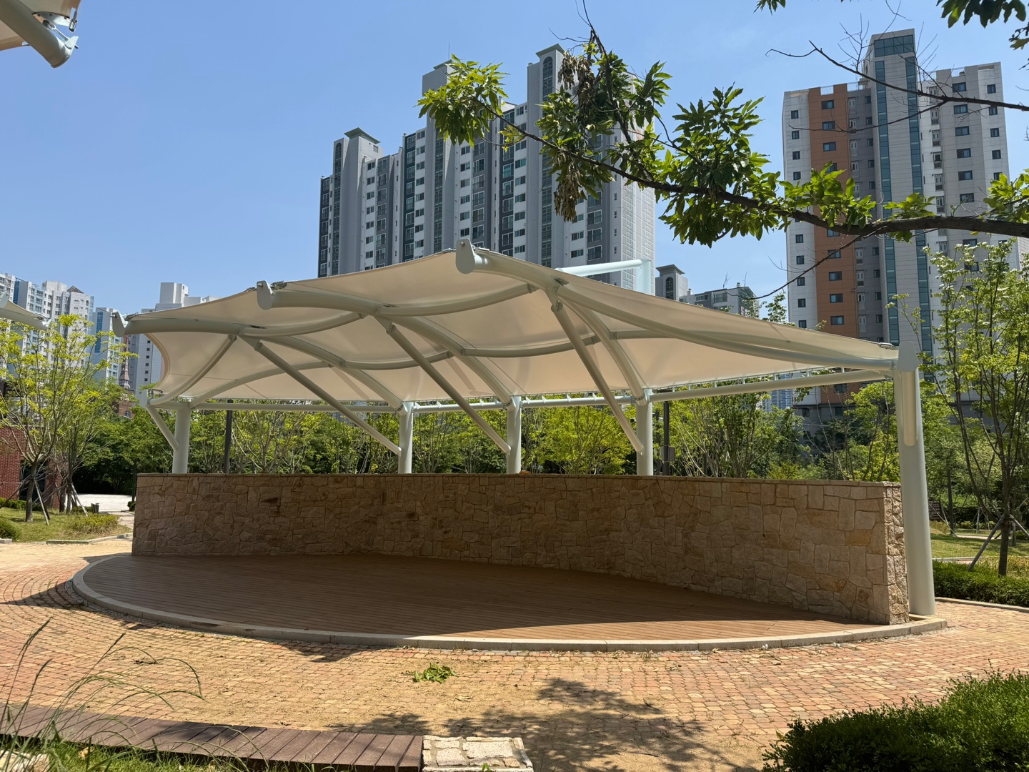 야외무대 호평 늘을중앙공원 야외무대 페이지 정보 작성자 최고관리자 댓글 0건 조회 105회 작성일 25-09-22 13:01 목록 게시판 리스트 옵션 검색 본문 Model Name Scale 628 Material PVF Construction Year 2025 제품설명 무대 앞의 반원형 계단식 관람석은 단순한 공연 공간을 넘어, 주민들이 자유롭게 앉아 쉬거나 소통할 수 있는 열린 커뮤니티 공간으로 기능합니다. 이곳이 특별한 날의 공연뿐 아니라, 평범한 오후의 휴식에도 어울리는 장소가 되기를 바랍니다. 이전글산청 중산관광지 야외무대 25.09.22 다음글인천 만석화수 해안산책로 야외무대 25.08.26