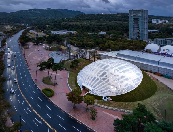 경주 한수원 APEC SSNC 홍보관의 지붕은 ETFE 필름을 활용한 2레이어 막구조로 설계되어, 가볍고 투명하면서도 안정적인 공간 경험을 제공합니다. 상부 필름은 외부 환경과 직접 맞닿아 자외선과 오염에 강하고 필요 시 프리팅 패턴을 적용해 일사량을 조절하며, 하부 필름은 실내측에서 결로를 줄이고 빛을 확산시켜 전시 공간에 균질한 채광을 만들어냅니다. 두 필름 사이에는 저압의 공기층이 형성되어 단열 성능을 높이고 구조적 진동을 억제하며, 일반적으로 수백 파스칼 수준의 압력을 유지해 안정성을 확보합니다. 필름 표면은 자가 세정성이 있어 오염에 강하고, 내부 조명과 결합하면 야간에는 외부로 은은한 빛을 투사해 홍보관의 상징성을 강화합니다. 또한 프리팅 패턴을 통해 한수원과 APEC의 아이덴티티를 시각적으로 표현하면서 동시에 태양열 취득률을 조절해 전시물 보호와 쾌적한 실내 환경을 구현합니다. 전체적으로 이 지붕은 구조적 안정성, 에너지 효율, 시각적 연출을 종합적으로 고려한 설계로, 경주의 기후와 장소성을 반영해 홍보관의 기능과 상징성을 동시에 담아냅니다.첨부파일